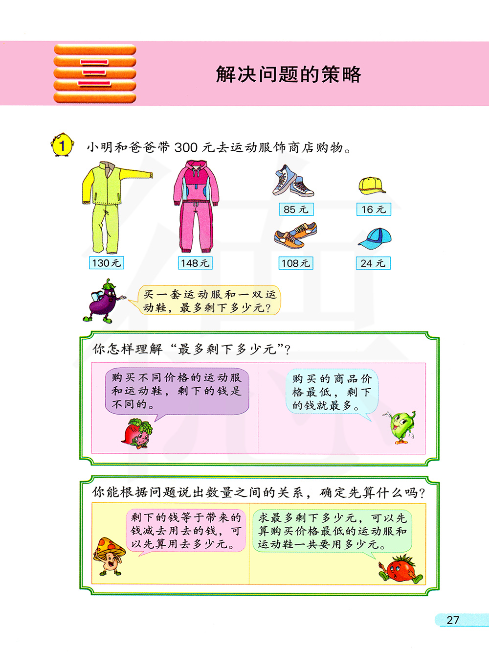 从问题入手,认真分析题中的数量关系,探究解题思路,确定先算什么,再算什么。如果有不同的算法,可以用一种算法检验另一种算法是否正确。