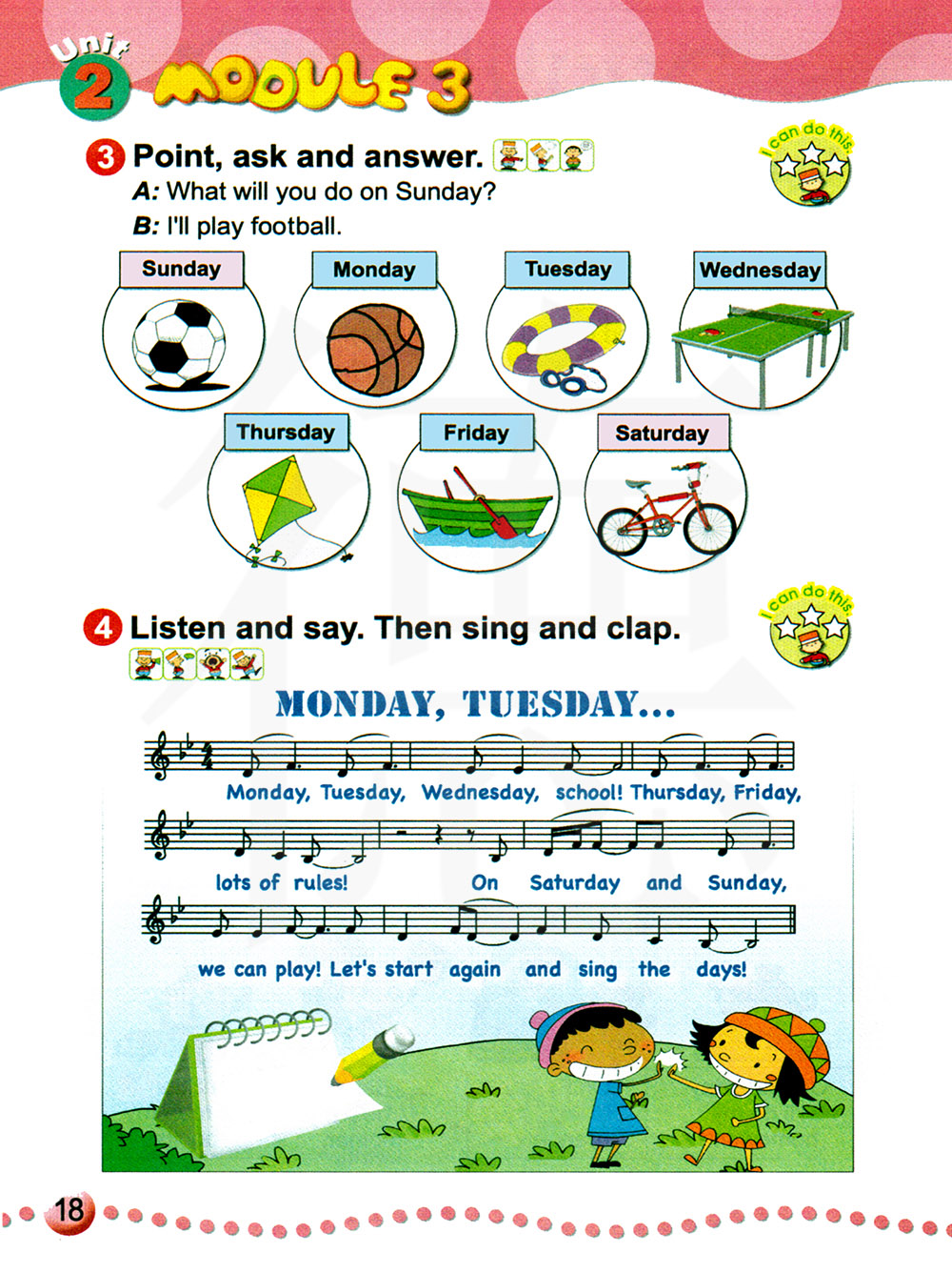 听一听,说一说。然后唱一唱,拍拍手。