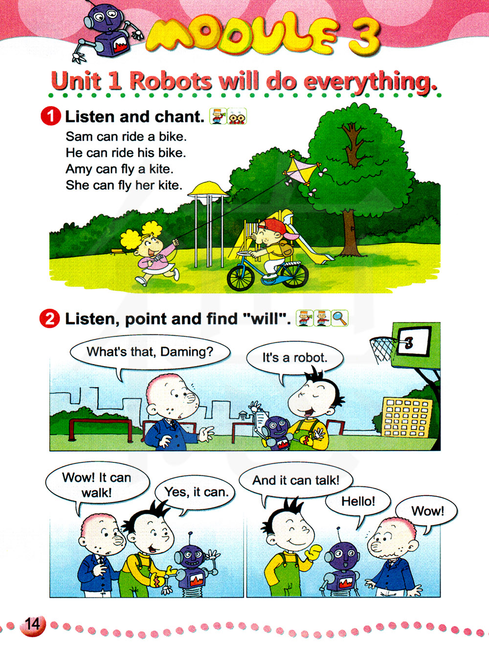 <p> <strong>学习目标:</strong></p> <p> 知识与技能:</p> <p> 1.Sentences: One day, robots will do everything.</p> <p> 2. Words and phrases: robot &nbsp;&nbsp;everything &nbsp;one day &nbsp;&nbsp;housework &nbsp;&nbsp;&nbsp;&nbsp;learn &nbsp;&nbsp;&nbsp;our &nbsp;that</p> <p> 3. Using will to describe things in the future</p> <p> 过程与方法:Describing things in the future and talking about abilities</p> <p> 情感、态度和价值观:对机器人将来能力的期待</p> <p> 德育目标:要养成好习惯、自己的作业自己完成</p> <p> <strong>重点:</strong>1.Sentences: One day, robots will do everything.</p> <p> 2. Words and phrases: robot &nbsp;&nbsp;everything &nbsp;</p> <p> &nbsp;one day &nbsp;&nbsp;housework &nbsp;&nbsp;&nbsp;&nbsp;learn &nbsp;&nbsp;&nbsp;our &nbsp;that</p> <p> <strong>难点:</strong>Using will to describe things in the future&nbsp;</p>题库