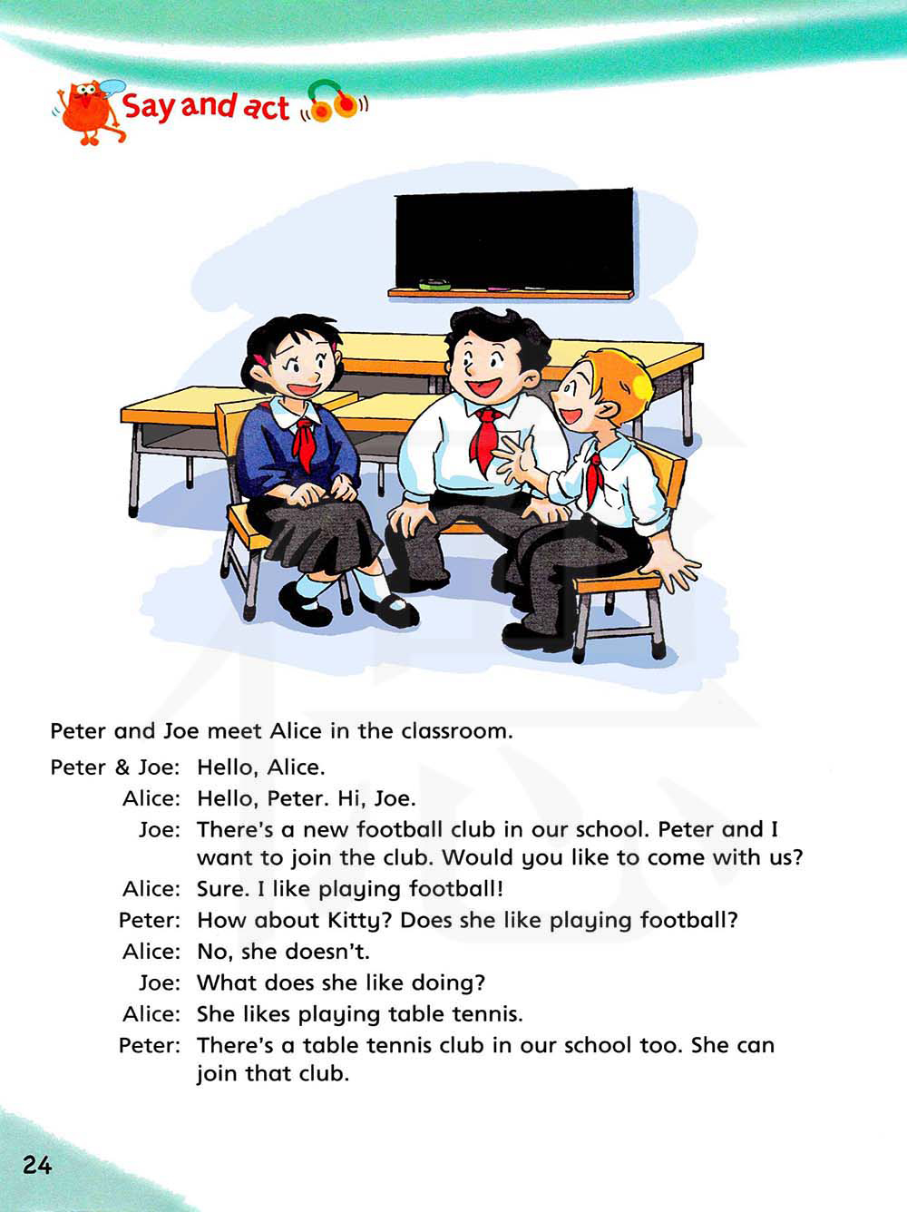 彼得和乔在教室里和艾丽丝会面。