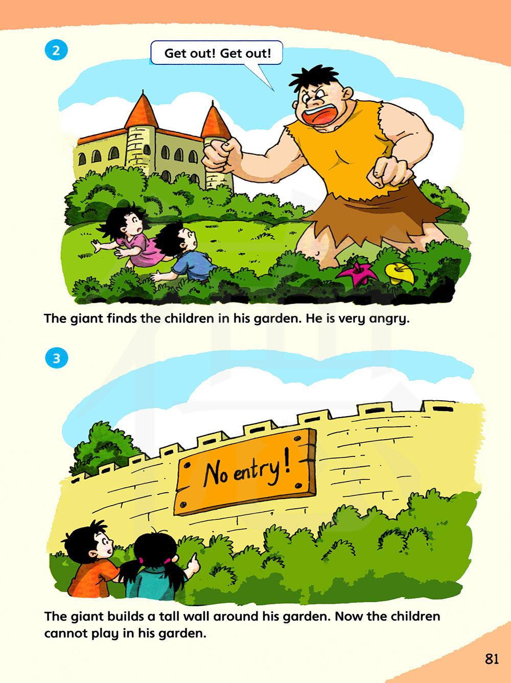 巨人沿着他的花园建起了一座高墙。现在孩子们不能在他的花园里玩耍了。