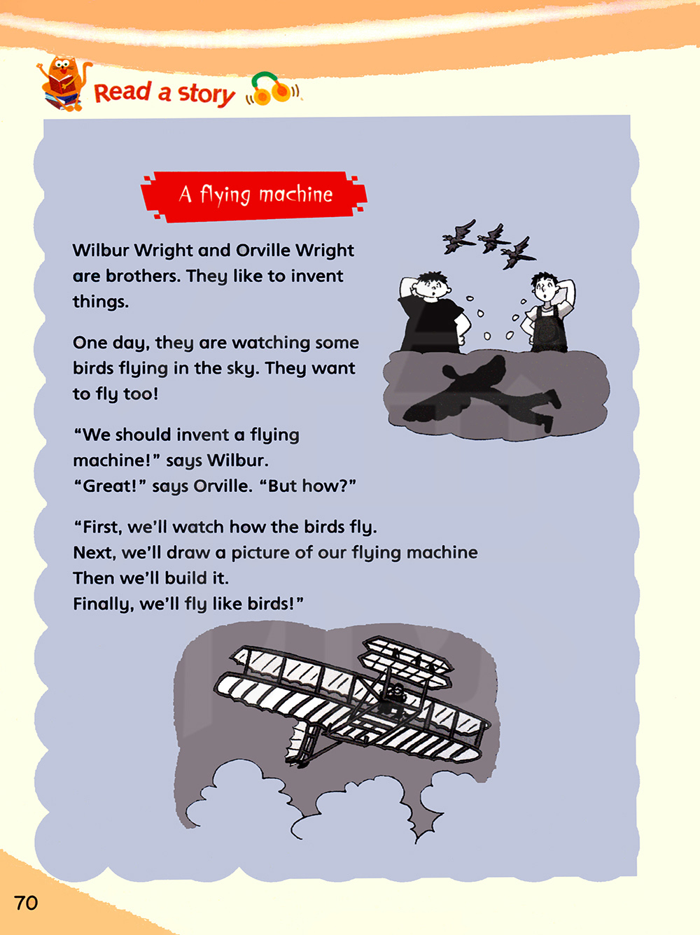 “我们应该发明一种飞机!”威尔伯说。“好极了!”奥维尔说。“但是怎样做呢?”