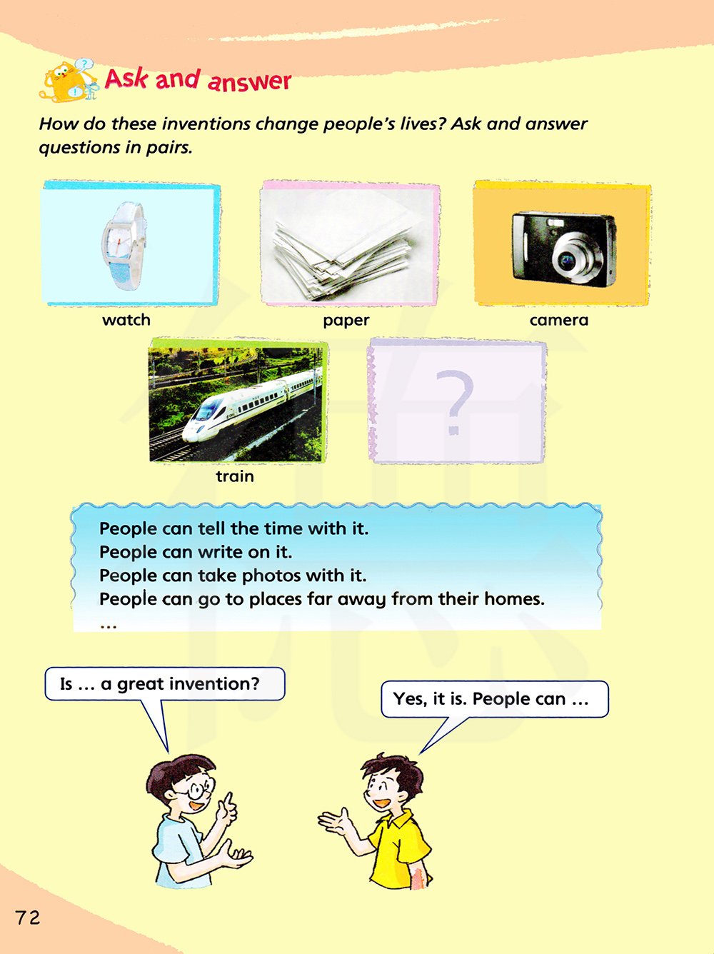 这些发明怎样改变了人们的生活?两人一组你问我答。