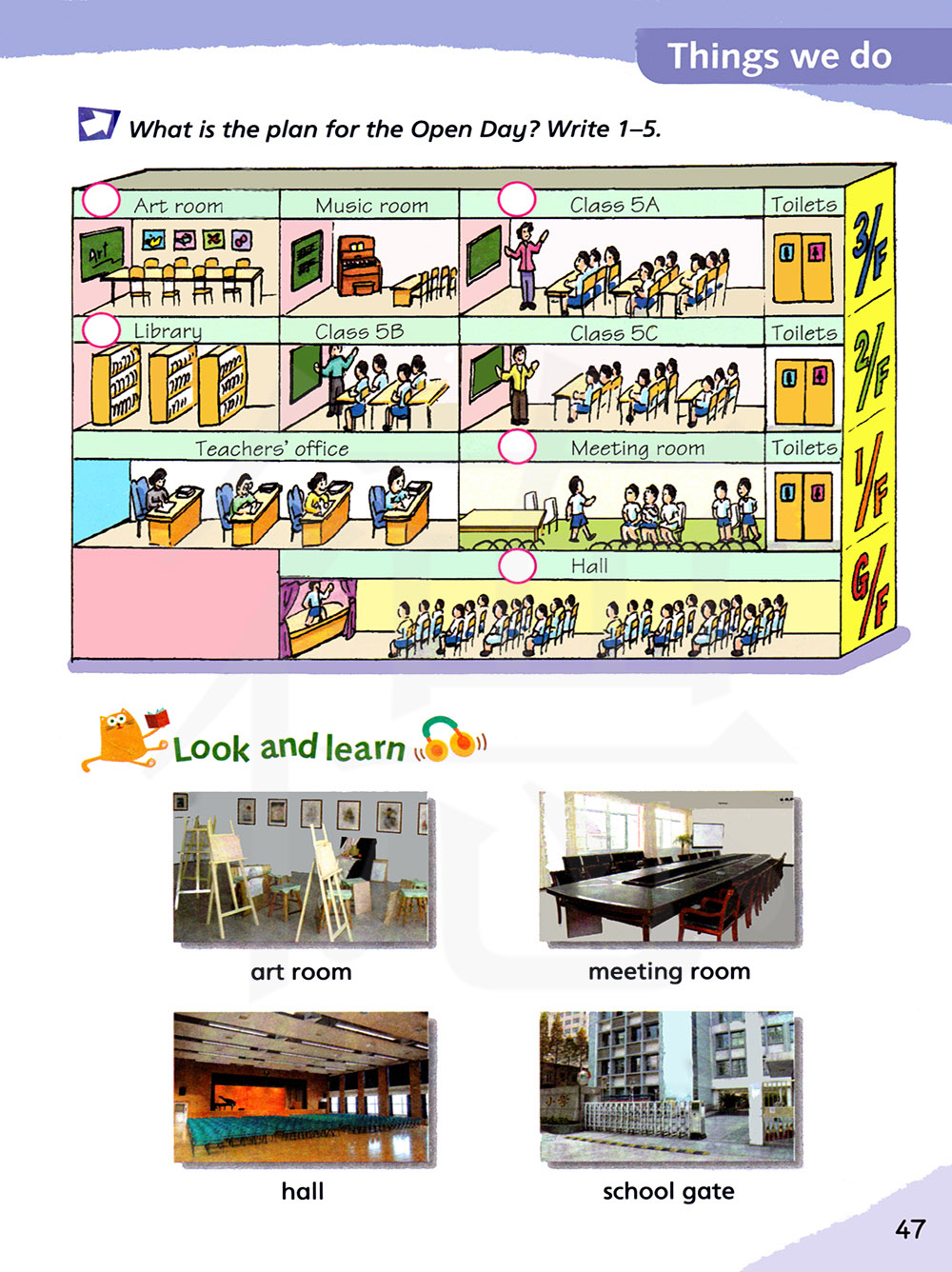 开放日的计划是怎样的?在圆圈中写出数字一至五。