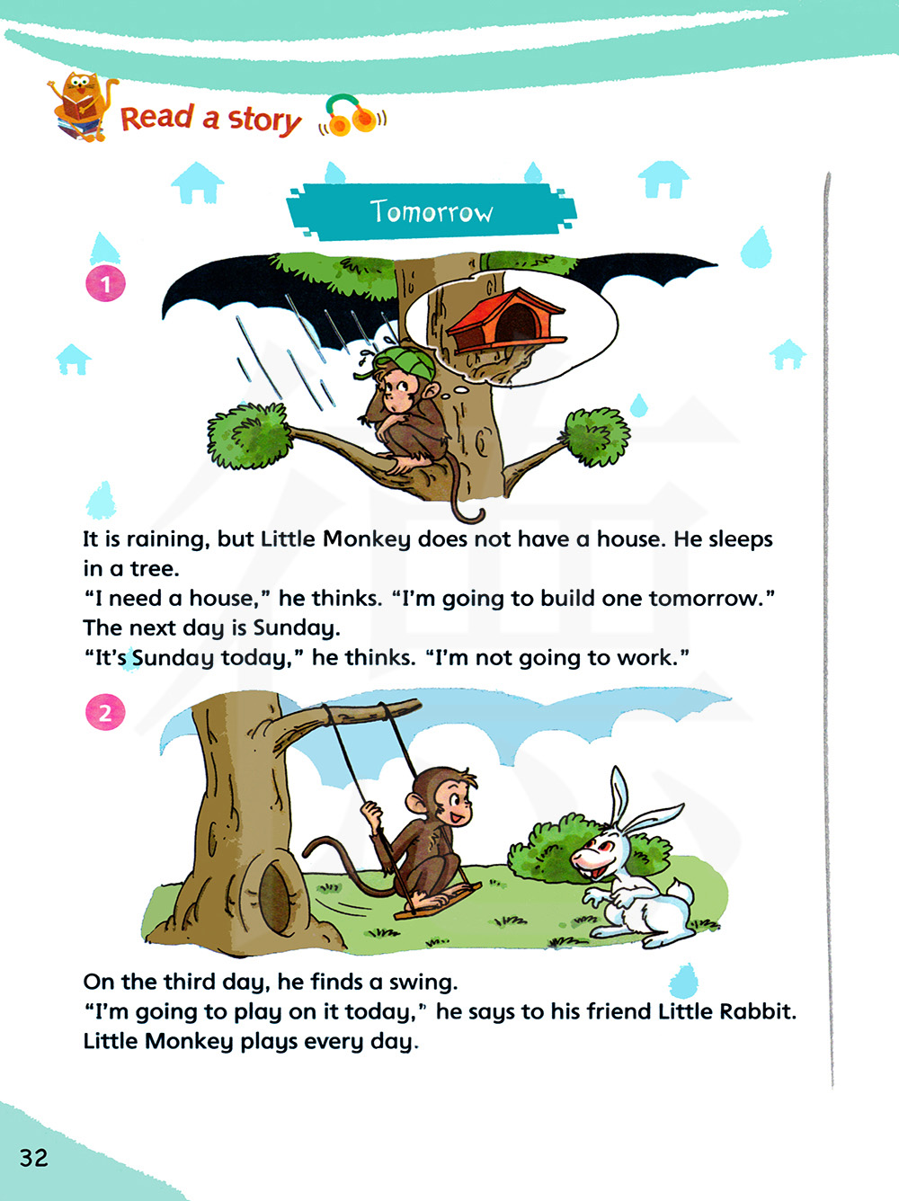 “今天我将在这上面玩。”他对他的朋友小白兔说。小猴子每天都在玩。