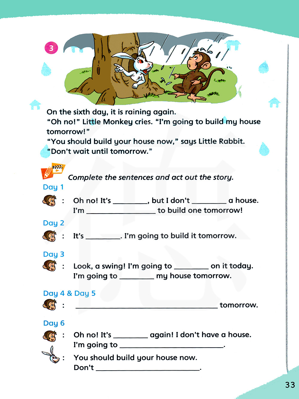 “糟糕!”小猴子哭道。”明天我将建一座房子!”