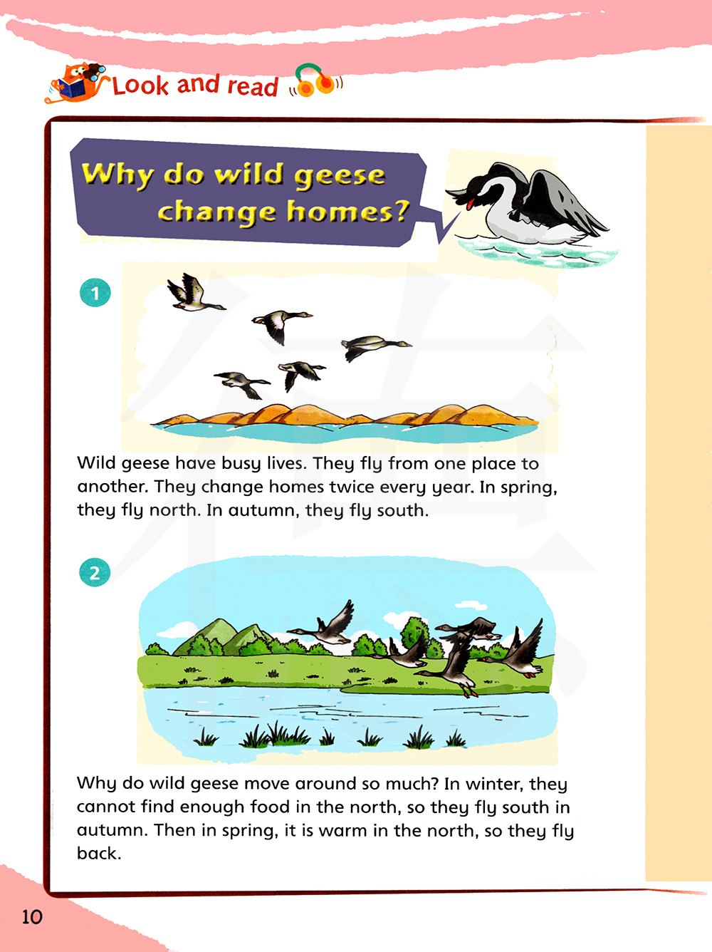 大雁为什么要如此地飞来飞去呢? 在冬天,它们在北方找不到足够的食物。所以它们在秋天飞到南方。在春天。北方变暖和了,因此它们飞回来。