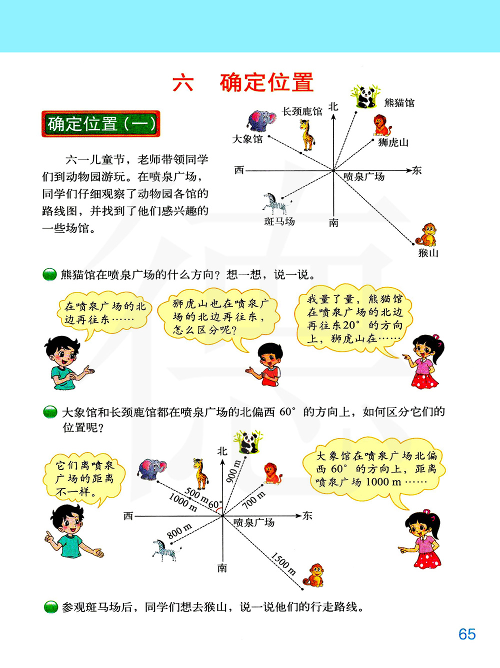 能根据平面图确定图中任意两地的相对位臵(以其中一地为观察点,度量另一地所在方向以及两地的距离)