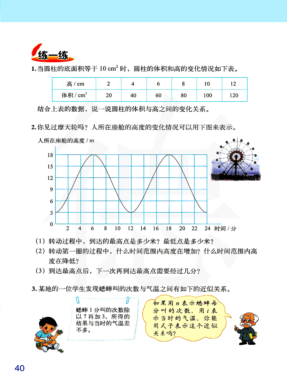 以上各种商都是一定的,那么被除数和除数. 所表示的两种相关联的量,成正比例关系. 注意:在判断两种相关联的量是否成正比例时应注意这两种相关联的量,虽然也是一种量,随着另一种的变化而变化,但它们相对应的两个数的比值不一定,它们就不能成正比例. 例如:一个人的年龄和它的体重,就不能成正比关系,正方形的边长和它的面积也不成正比例关系.