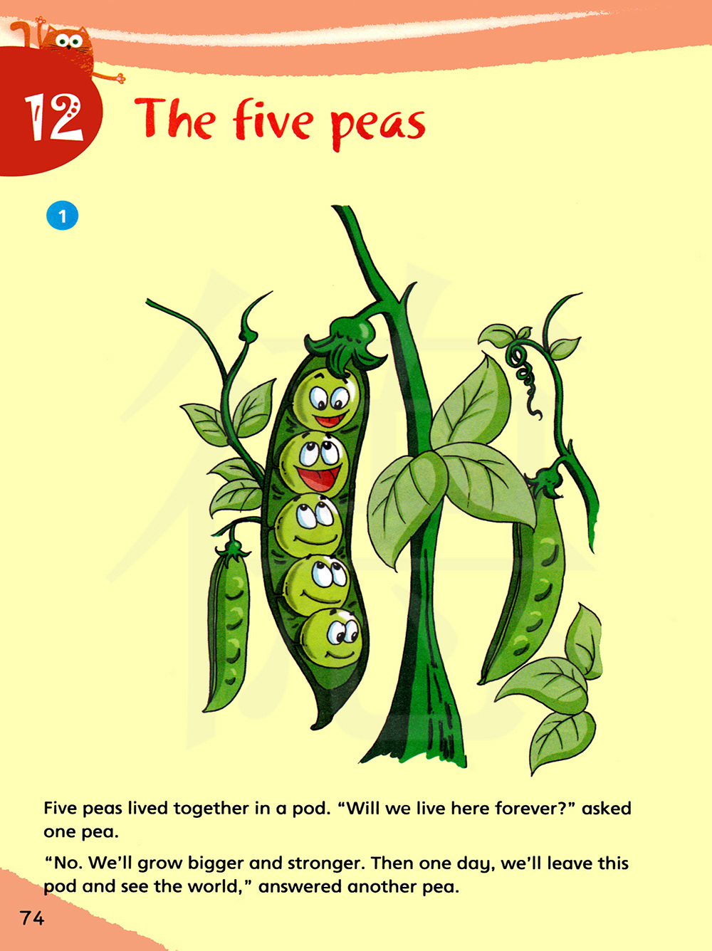五颗豌豆一起住在一个豆荚里。“我们会永远住在这里吗?”一颗豌豆问。