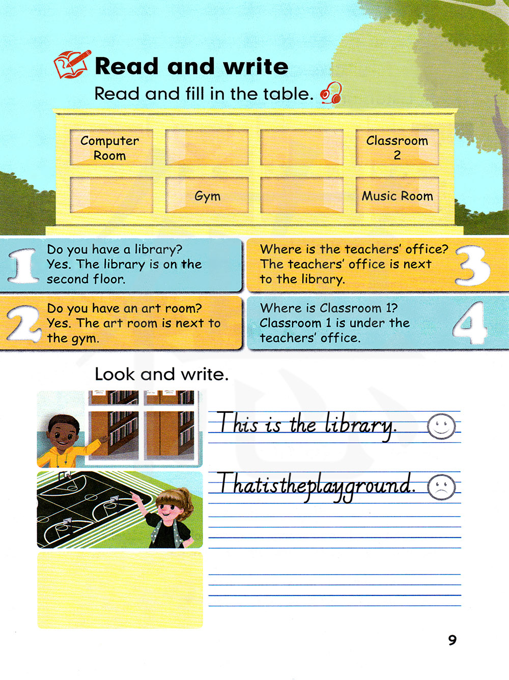 教师办公室在哪里? 教师办公室挨着图书馆。