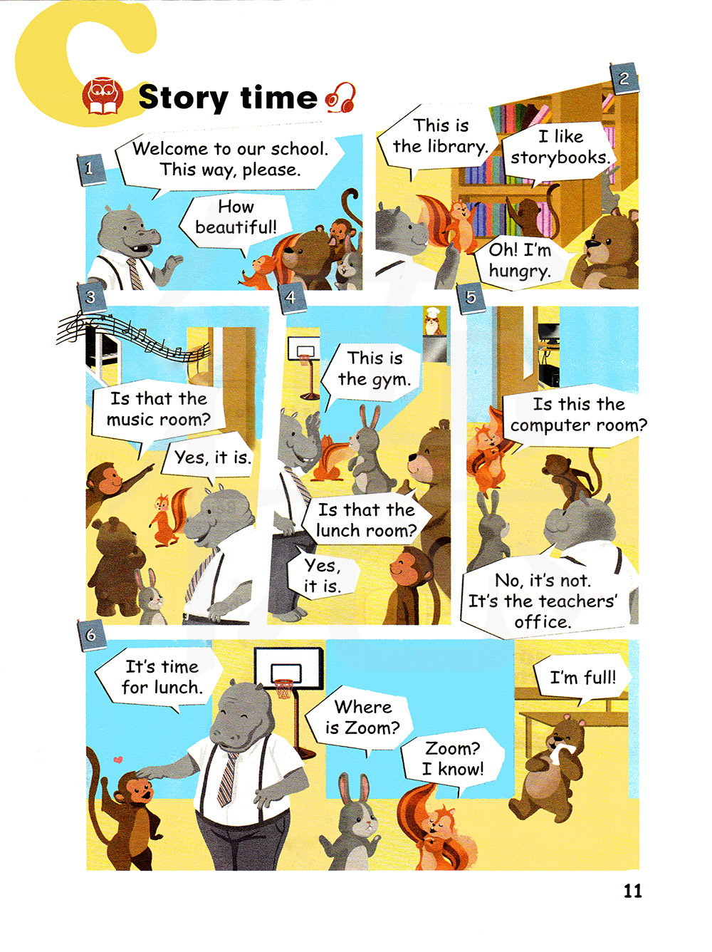 欢迎来到我们的学校。请这边走。