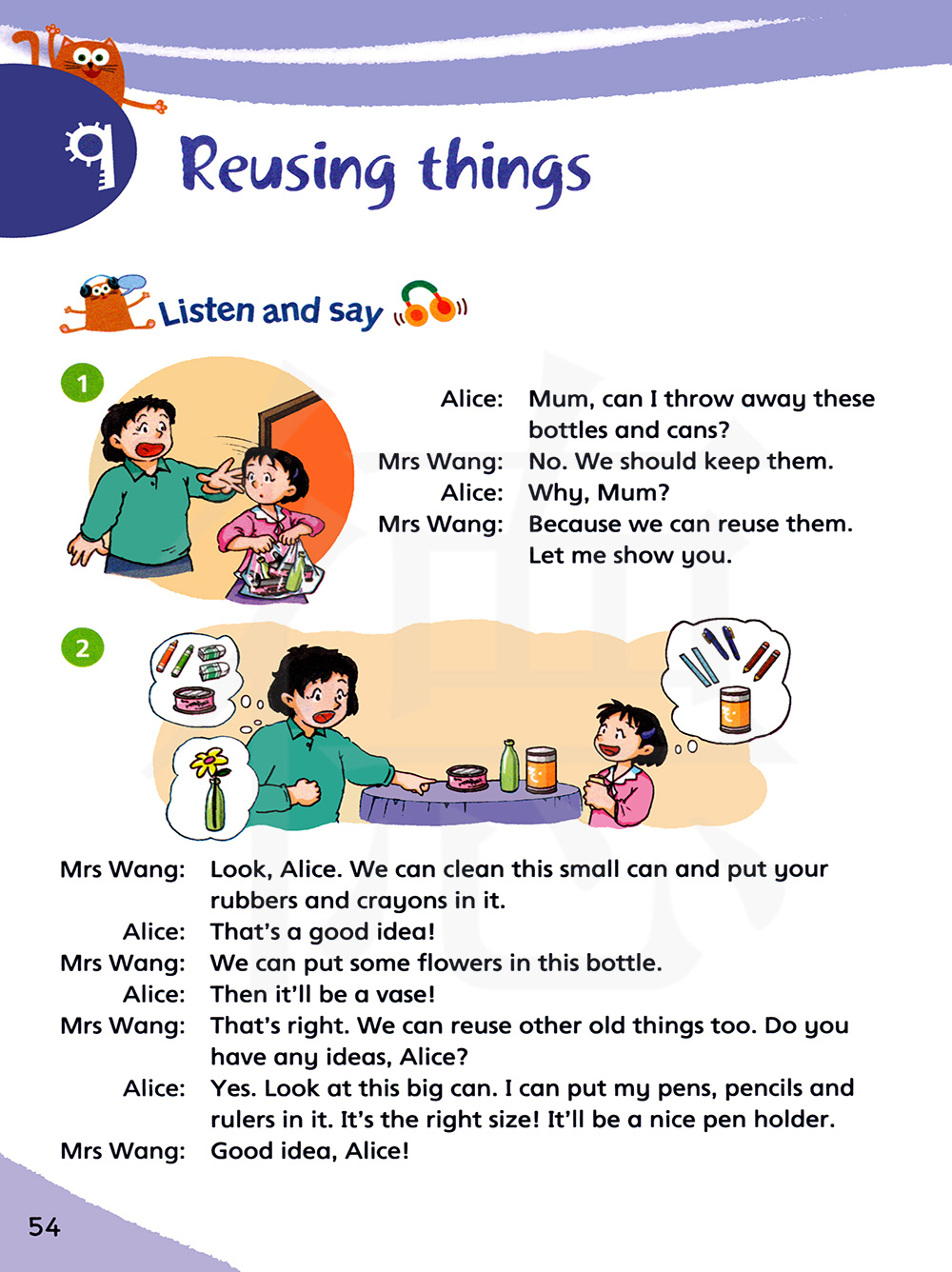 没错。我们也可以重复使用其他的旧东西。爱丽丝,你有什么想法吗?