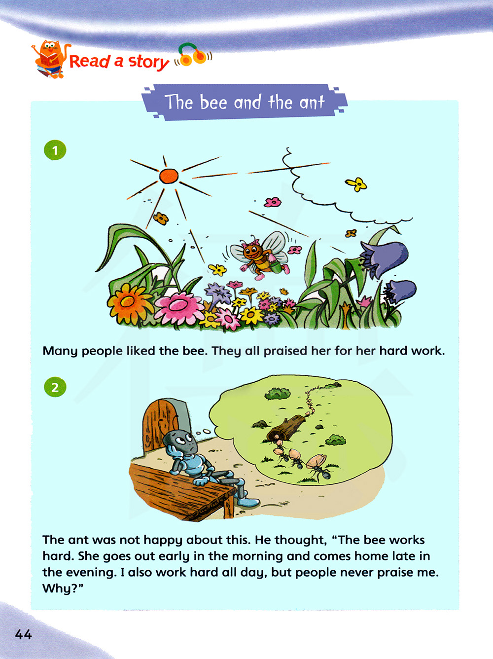 蚂蚁为此不高兴。他想,“蜜蜂辛勤工作。她清晨出门,傍晚回家。”我一整天都在努力工作,但人们从来没有夸过我。为什么呢?”