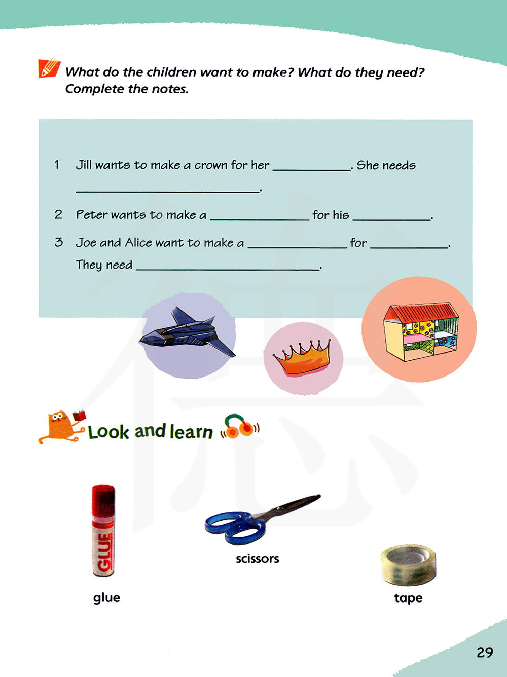 2、He needs some (胶水) 3、this is a (工具) i can use it(容易地)