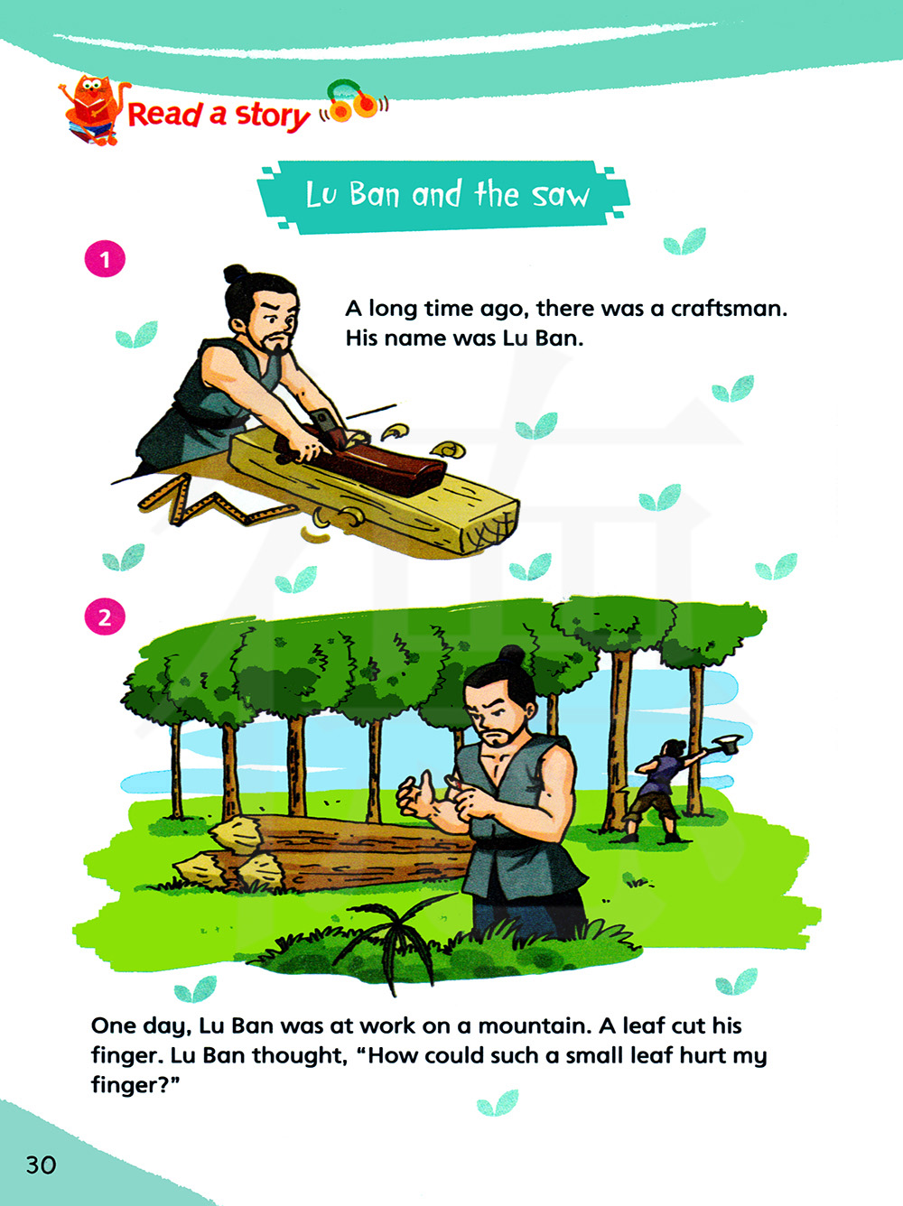 有一天,鲁班在山上工作。一片叶子割破了他的手指。鲁班想:“这样一片小小的叶子怎么会伤到我的手指?”