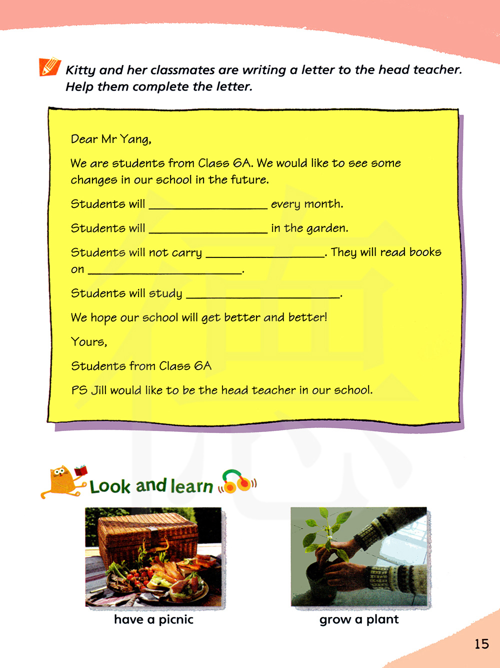 <p> <span style="color: rgb(51, 51, 51); line-height: 20.4px; text-indent: 37.33px; font-family: 宋体; font-size: 18.66px; background-color: rgb(255, 255, 255);">生词及短语:</span><span lang="EN-US" style="color: rgb(51, 51, 51); line-height: 20.4px; text-indent: 37.33px; font-family: 宋体; font-size: 18.66px; background-color: rgb(255, 255, 255);">carry</span><span style="color: rgb(51, 51, 51); line-height: 20.4px; text-indent: 37.33px; font-family: 宋体; font-size: 18.66px; background-color: rgb(255, 255, 255);">、</span><span lang="EN-US" style="color: rgb(51, 51, 51); line-height: 20.4px; text-indent: 37.33px; font-family: 宋体; font-size: 18.66px; background-color: rgb(255, 255, 255);">a piece of</span><span style="color: rgb(51, 51, 51); line-height: 20.4px; text-indent: 37.33px; font-family: 宋体; font-size: 18.66px; background-color: rgb(255, 255, 255);">、</span><span lang="EN-US" style="color: rgb(51, 51, 51); line-height: 20.4px; text-indent: 37.33px; font-family: 宋体; font-size: 18.66px; background-color: rgb(255, 255, 255);">have a picnic</span><span style="color: rgb(51, 51, 51); line-height: 20.4px; text-indent: 37.33px; font-family: 宋体; font-size: 18.66px; background-color: rgb(255, 255, 255);">、</span><span lang="EN-US" style="color: rgb(51, 51, 51); line-height: 20.4px; text-indent: 37.33px; font-family: 宋体; font-size: 18.66px; background-color: rgb(255, 255, 255);">grow a plant</span><span style="color: rgb(51, 51, 51); line-height: 20.4px; text-indent: 37.33px; font-family: 宋体; font-size: 18.66px; background-color: rgb(255, 255, 255);">、</span><span lang="EN-US" style="color: rgb(51, 51, 51); line-height: 20.4px; text-indent: 37.33px; font-family: 宋体; font-size: 18.66px; background-color: rgb(255, 255, 255);">better and better</span><span style="color: rgb(51, 51, 51); line-height: 20.4px; text-indent: 37.33px; font-family: 宋体; font-size: 18.66px; background-color: rgb(255, 255, 255);">;</span></p> <p> <span style="color: rgb(51, 51, 51); line-height: 20.4px; text-indent: 37.33px; font-family: 宋体; font-size: 18.66px; background-color: rgb(255, 255, 255);">句型:</span><span lang="EN-US" style="color: rgb(51, 51, 51); line-height: 20.4px; text-indent: 37.33px; font-family: 宋体; font-size: 18.66px; background-color: rgb(255, 255, 255);">-What changes would you like to see in our school?-...will...</span></p> <p> 知识点:</p> <p> <strong>表示一般将来时的方法主要有以下几种:1. will/shall+动词原形;2. be going to +动词原形;3. be+to+动词原形。现将它们的各种语用功能简述如下:</strong></p> <p> <strong> 一。 表示&ldquo;预测,预计&rdquo;等意思。</strong></p> <p> <strong> 当我们作&ldquo;预测&rdquo;时,用&ldquo;will/shall+动词原形&rdquo;或&ldquo;be going to +动词原形&rdquo;表示,不用现在进行时。例如:</strong></p> <p> <strong> 1. I think it &#39; ll rain this evening./I think it &#39; s going to rain this evening.&nbsp;(我想今天晚上天要下雨)</strong></p> <p> <strong> 2. You are going to hate this party./You will hate this party.(你将不喜欢这次聚会。)</strong></p> <p> <strong> 但是,当提及在某种条件下,一般用&ldquo;will/shall+动词原形&rdquo;表示,而不用&ldquo;be going to+动词原形&rdquo;表示。例如:</strong></p> <p> <strong> If you work hard,&nbsp;you will pass the test easily.(如果你努力学习,你会很容易地通过考试的。)</strong></p> <p> <strong> 不能说:If you work hard,&nbsp;you are going to pass the test.</strong></p> <p> <strong> 在口语中,&ldquo;I bet/I hope&rdquo;后面的从句可以用一般现在时表示将来时间。例如:</strong></p> <p> <strong> I bet she likes the flowers.(=I bet she will like the flowers.)(我敢说她会喜欢这些花的。)</strong></p> <p> <strong> 二。 表示&ldquo;已经确定的&rdquo;意思。</strong></p> <p> <strong> 有些句子,表示的既是将来,同时又是现在的情况。当你说&ldquo;She &#39; s going to have a baby&rdquo;时,不仅包含将来的信息(她将要生孩子了),而且也包含现在的信息(她已怀孕了)。在这种情况下,通常用&ldquo;be going to+动词原形&rdquo;表示。例如:</strong></p> <p> <strong> The Greens are coming to dinner.(格林夫妇要来吃晚饭。)(邀请已经发出,并且对方接受了邀请。)</strong></p> <p> <strong> &ldquo;be going to +动词原形&rdquo;还可表示强烈的决心。例如:</strong></p> <p> <strong> I &#39; m going to get to the top even if it kills me.(即使要了我的命,我也要爬到顶上。)</strong></p> <p> <strong> 三。 表示&ldquo;某种决定&rdquo;的意思。</strong></p> <p> <strong> 当我们谈及&ldquo;已作出一项决定&rdquo;时,一般用&ldquo;will+动词原形&rdquo;表示。(除了疑问句外,很少用&ldquo;shall+动词原形&rdquo;,且常用缩略式&nbsp;&#39; ll)例如:</strong></p> <p> <strong> &mdash;&mdash;The phone is ringing.(电话响了。)</strong></p> <p> <strong> &mdash;&mdash;I &#39; ll answer it.(我去接吧。)</strong></p> <p> <strong> 如果要问我们应当如何决定,就用&ldquo;shall+动词原形&rdquo;表示。例如:</strong></p> <p> <strong> What shall we do?(我们该怎么办?)</strong></p> <p> <strong> 四。 表示&ldquo;威胁,允诺&rdquo;等意思。</strong></p> <p> <strong> 表示&ldquo;威胁&rdquo;或&ldquo;允诺&rdquo;时,第一称常用&ldquo;I/We+will( &lsquo;&nbsp;ll)+动词原形&rdquo;表示。但是,也可用&ldquo;&hellip;&hellip;+be going to+动词原形&rdquo;表示。第二人称和第三人称可以用&ldquo;You/He/She/They+shall+动词原形&rdquo;表示。例如:</strong></p> <p> <strong> I promise I won &#39; t get drunk again./I promise I &#39; m not going to get drunk again.(我保证决不再喝醉了。)</strong></p> <p> <strong> You shall be punished.(你会受到处罚的。)</strong></p> <p> <strong> He shall suffer for this!(他会为此而吃苦头的。)</
