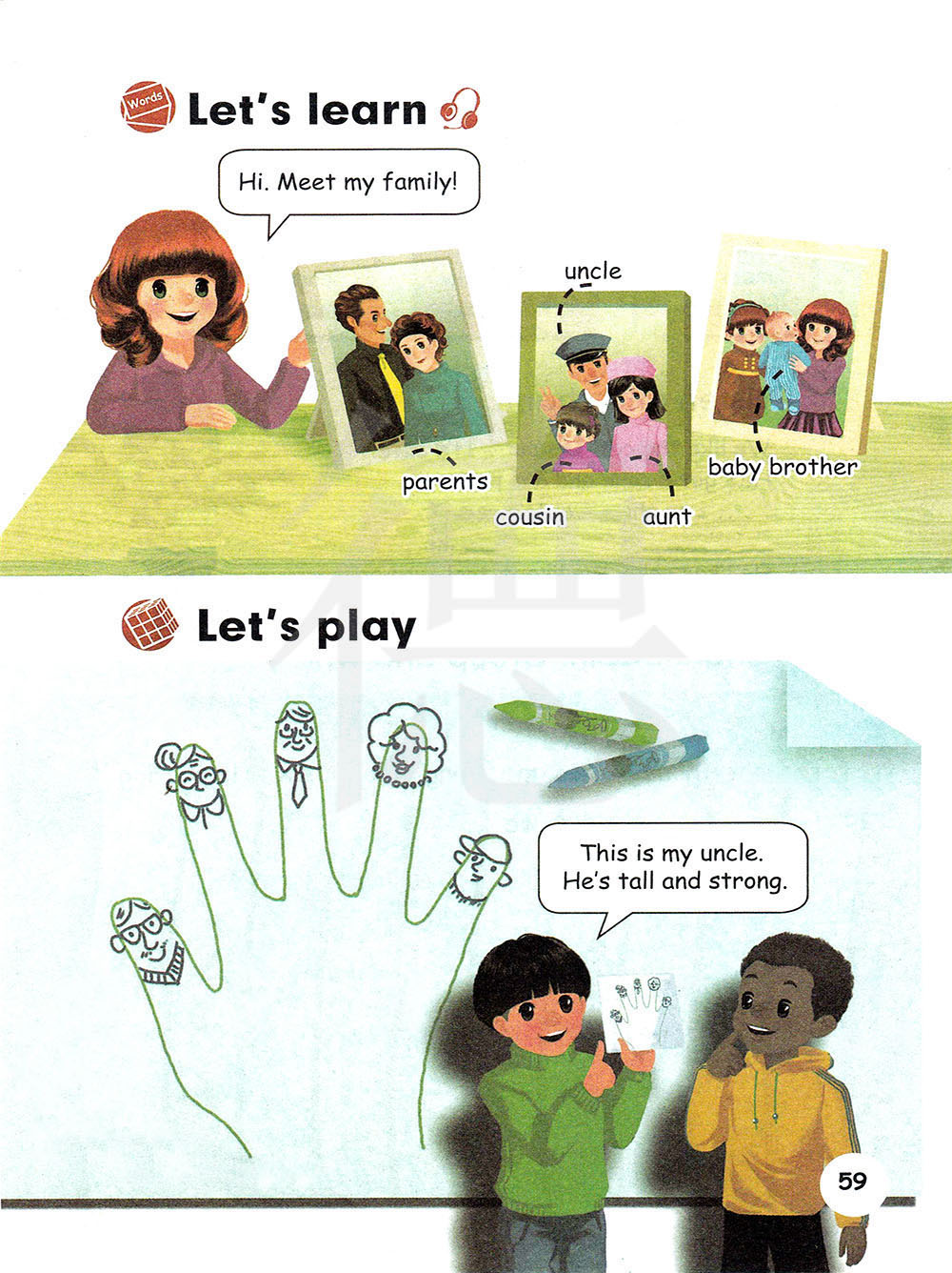 这是我叔叔。他又高又壮。