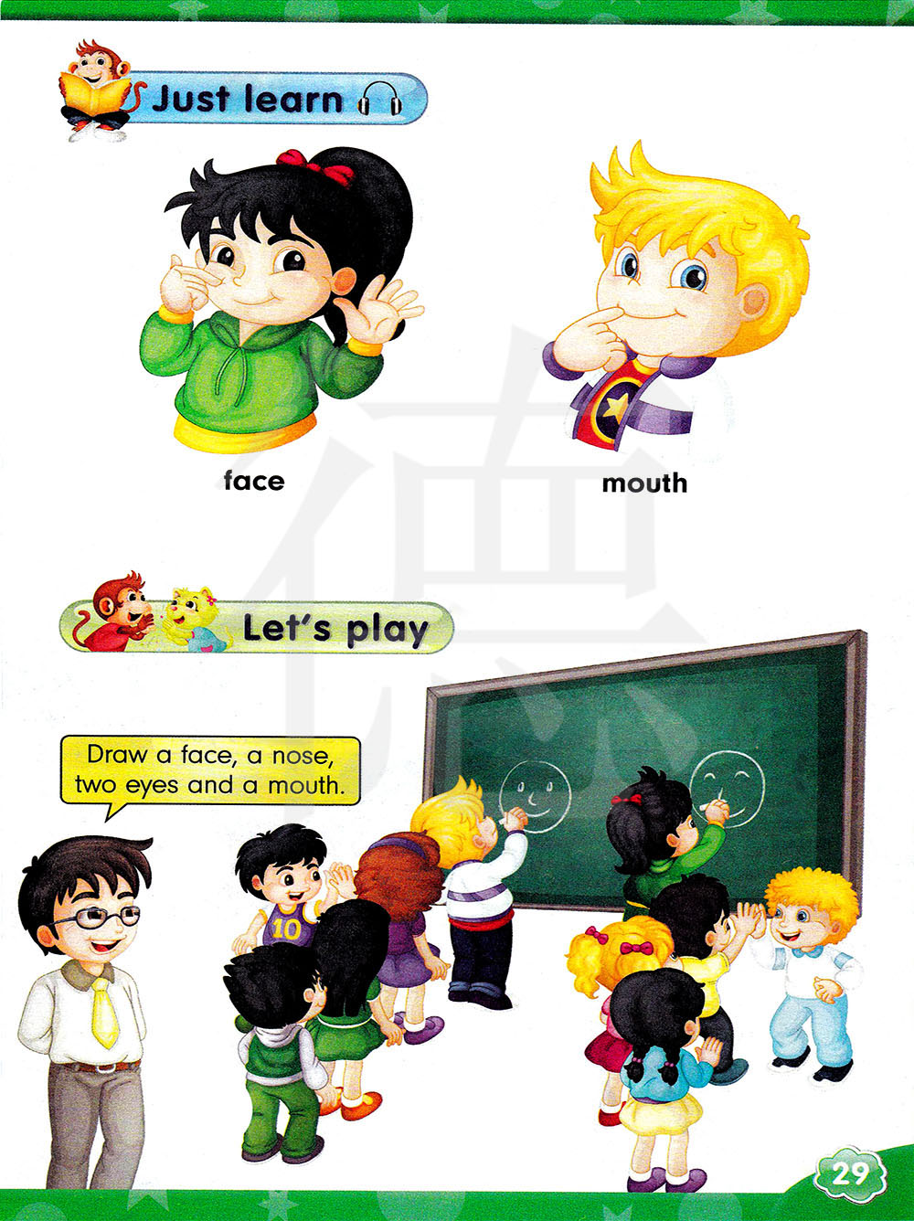 画一张脸,一个鼻子,两只眼睛和一张嘴。