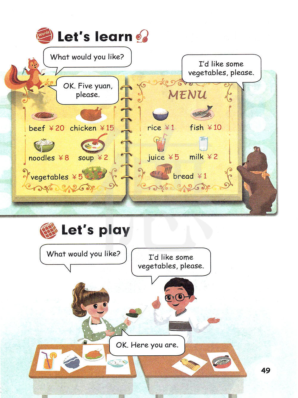 我想要蔬菜。