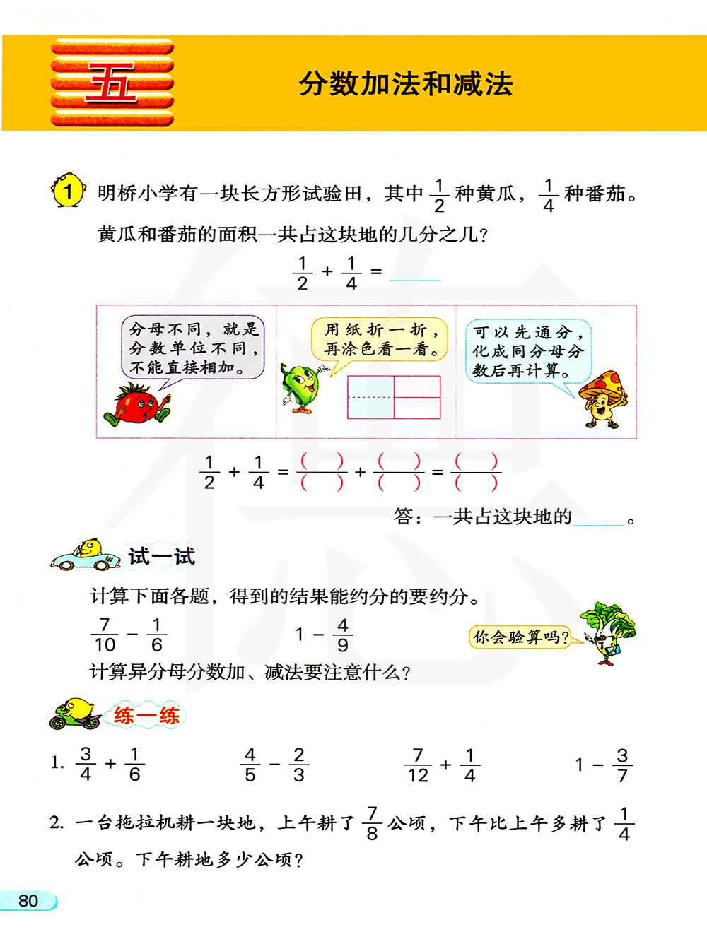 25、分数加、减法混合运算顺序与整数、小数加减混合运算顺序相同。没有小括号,从左往右,依次运算;有小括号,先算小括号里的算式。