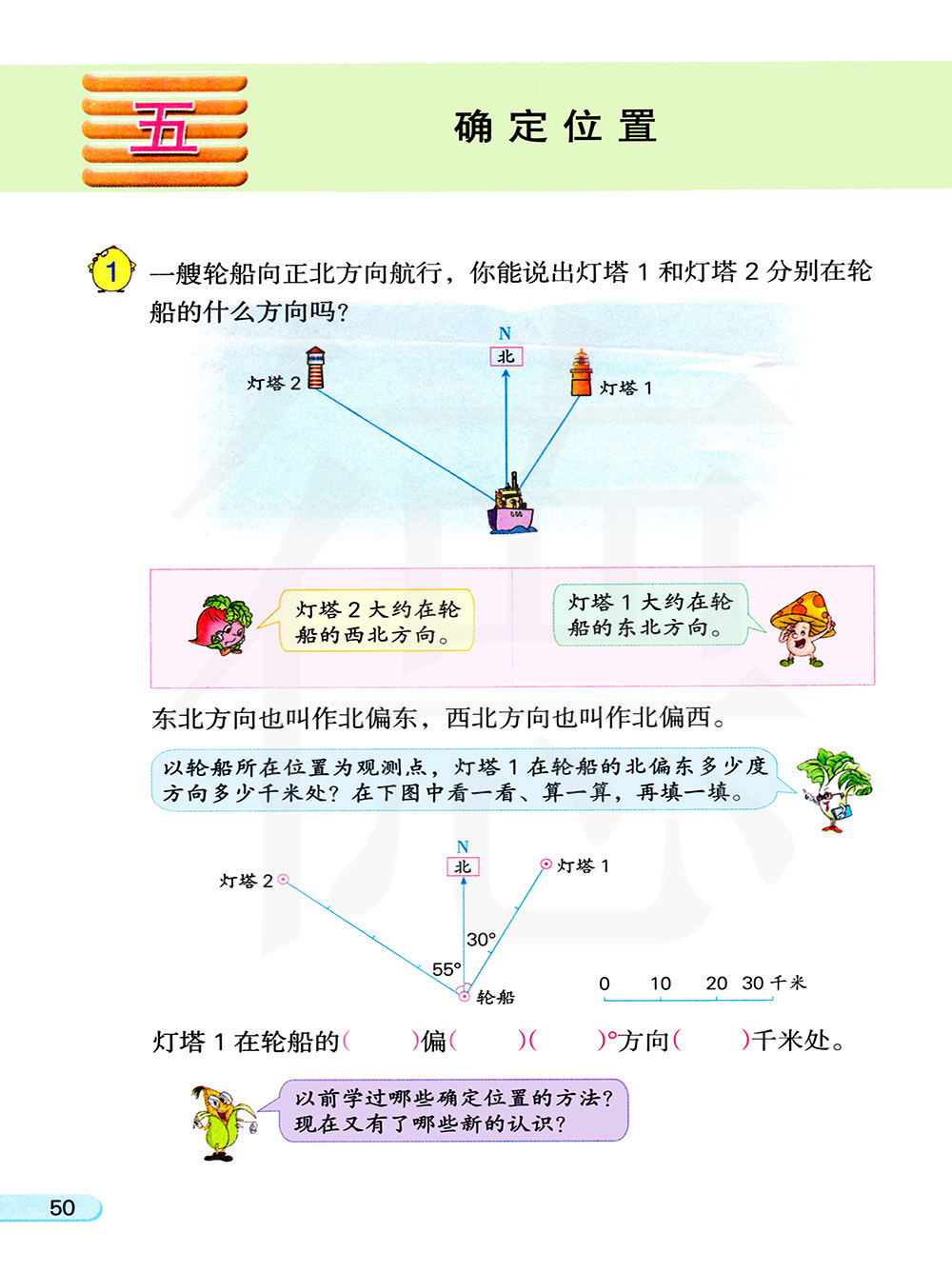 (3)如何来用方向和距离确定位置呢? 答:一找观察地点和实际地点,二看实际地点在观察地点的什么方向上,三量出观察地点和实际地点的距离,四标注要清楚。