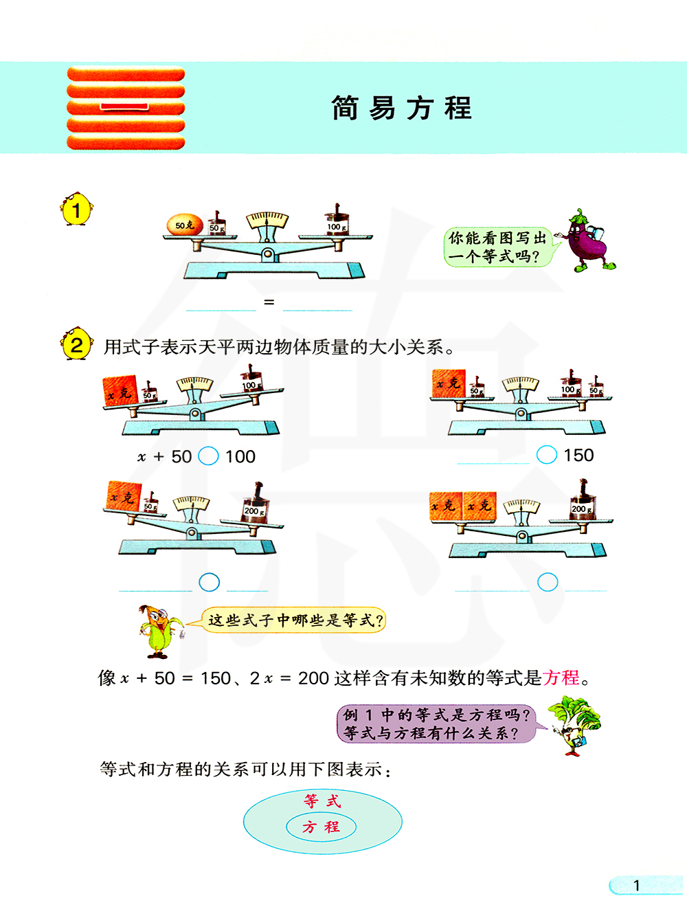 3、方程一定是等式;等式不一定是方程。等式>方程