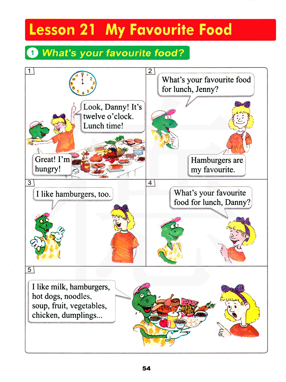 我喜欢牛奶、汉堡包、热狗、面条、汤、水果、蔬菜、鸡肉、饺子……