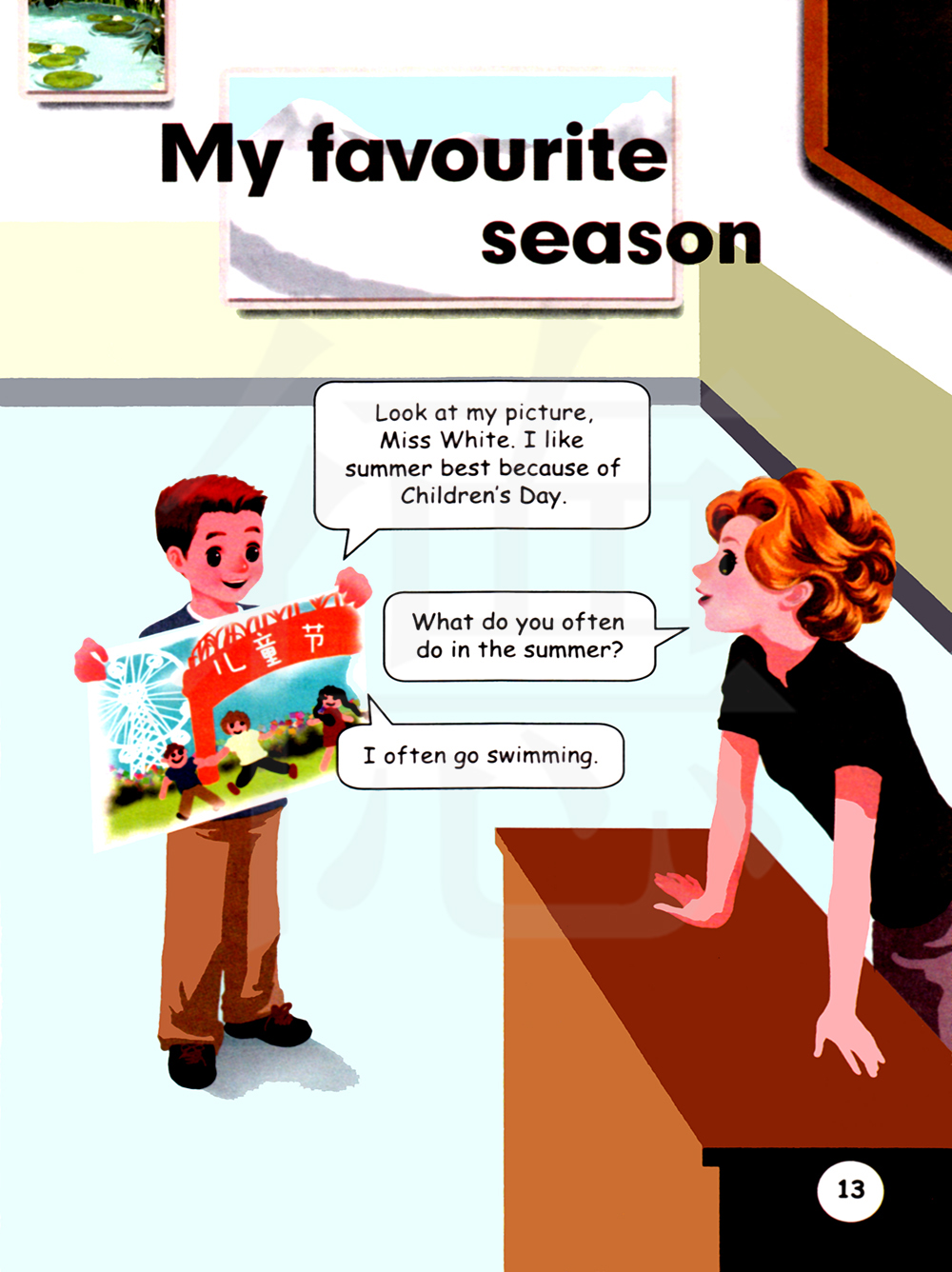 看我的画,怀特小姐。我最喜欢夏天,因为儿童节。