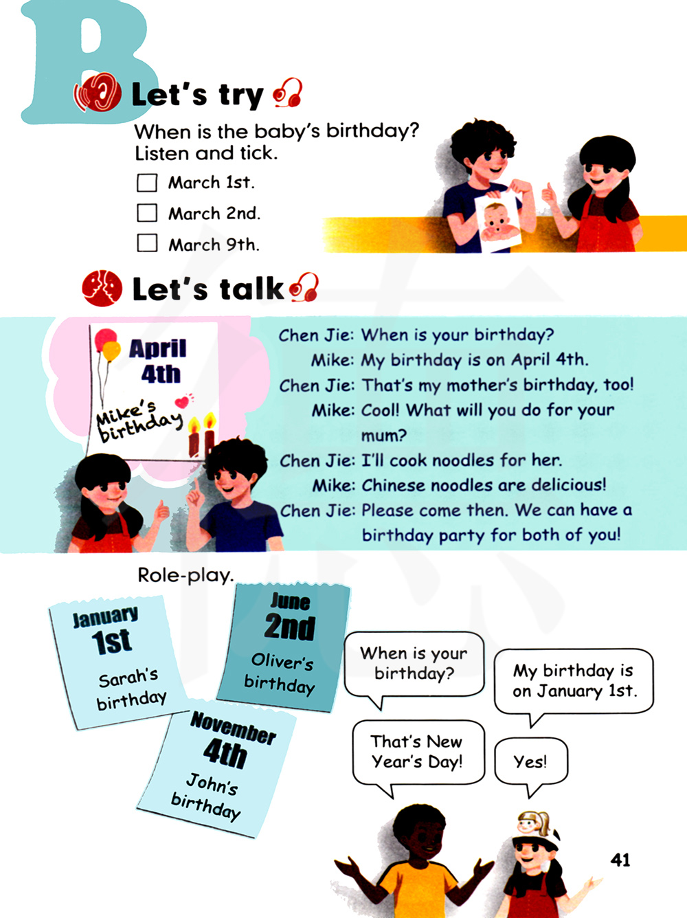 你的生日是哪天? 我的生日是4月4日。 那也是我妈妈的生日! 真酷!你将会为你的妈妈做什么?