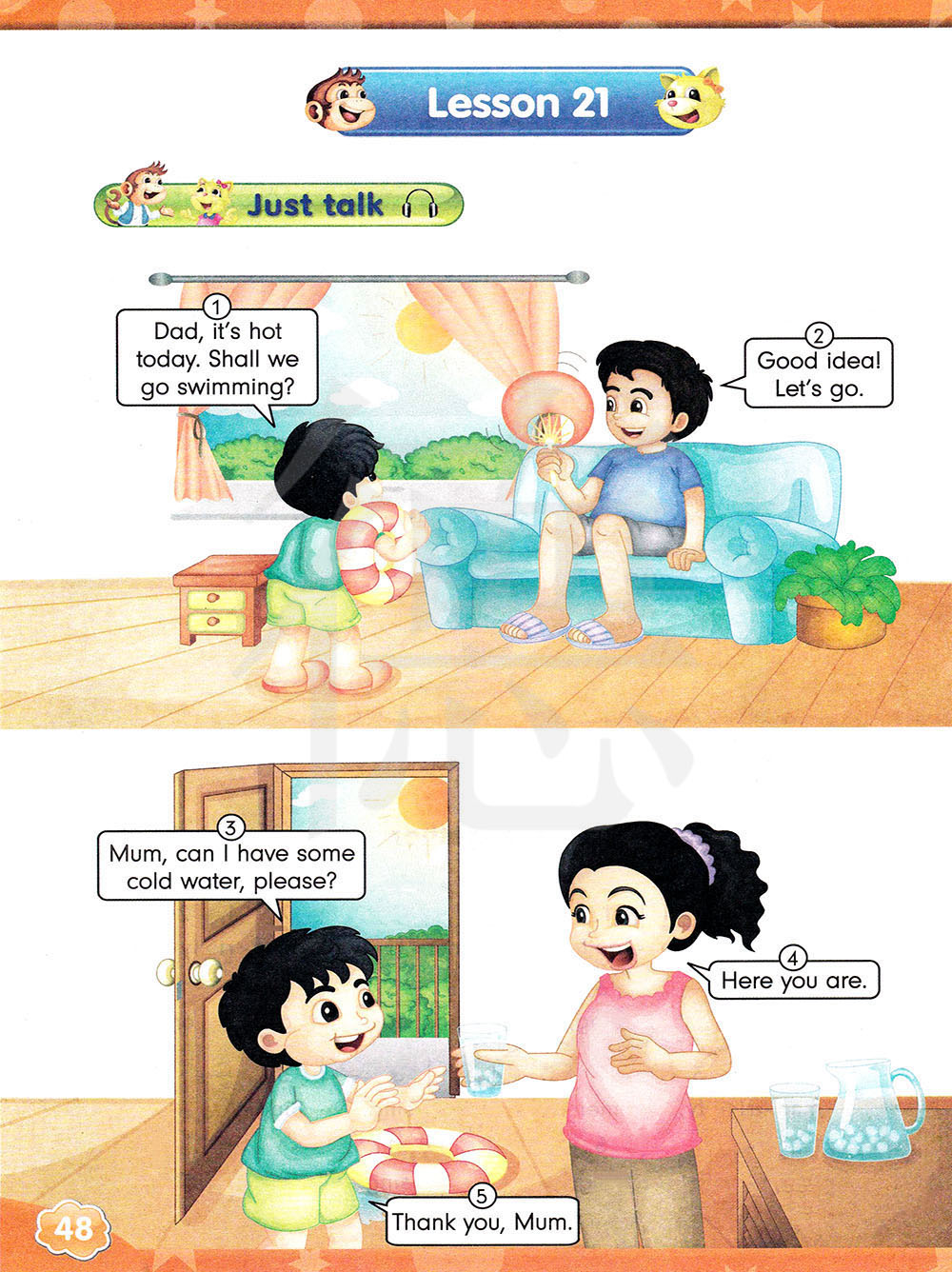 爸爸,今天天气炎热。我们可以去游泳吗?