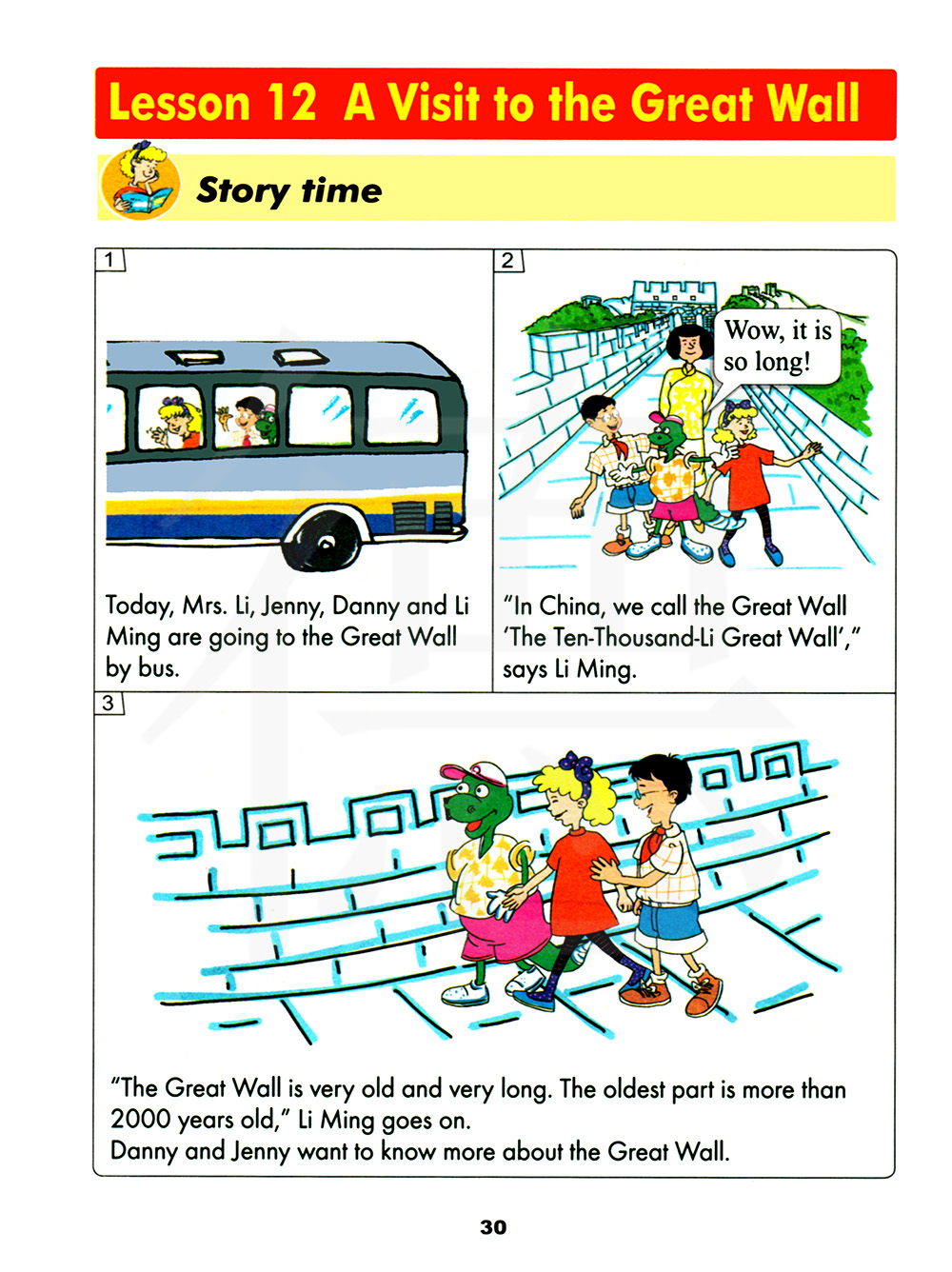“长城非常古老也很长。最古老的部分超过2000年了,”李明继续说道。丹尼和詹尼想更加了解长城。