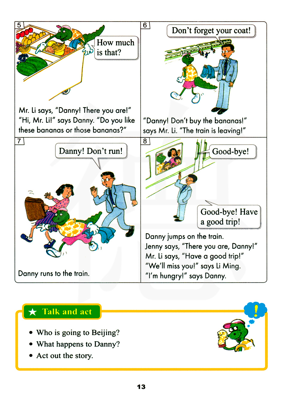 “丹尼!不要买香蕉了!”李先生说。“火车要开了!”