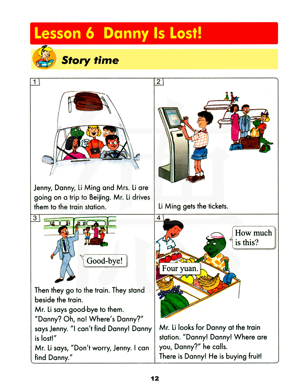 李先生载火车站找丹尼。“丹尼!丹尼!丹尼,你在哪里?”他喊道。丹尼在这里!他在买水果!