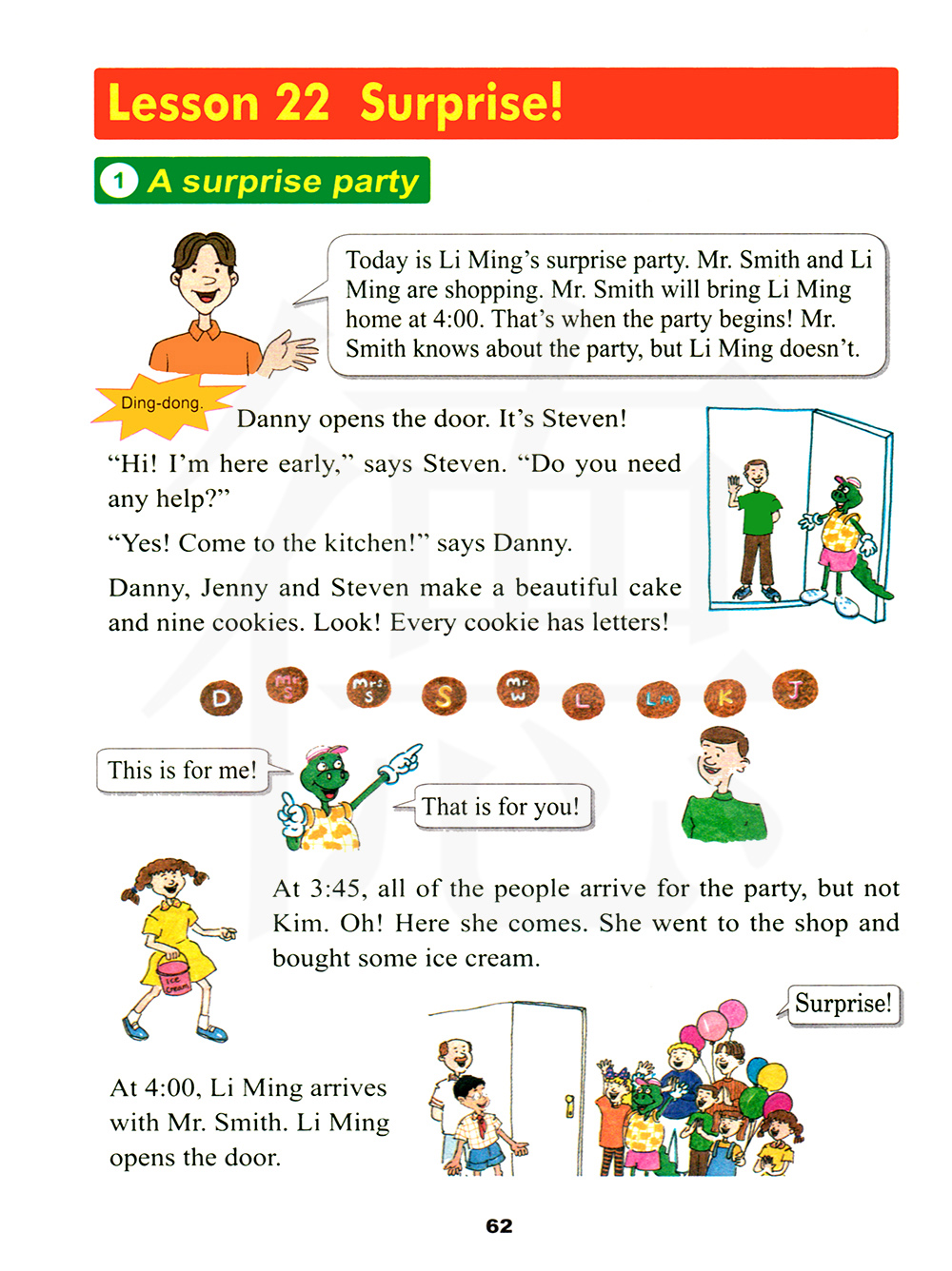 今天是李明的惊喜聚会,史密斯先生和李明一起去买东西了,史密斯先生将在四点带李明回家。聚会开始的时间到了,史密斯先生知道这个聚会,但是李明不知道。