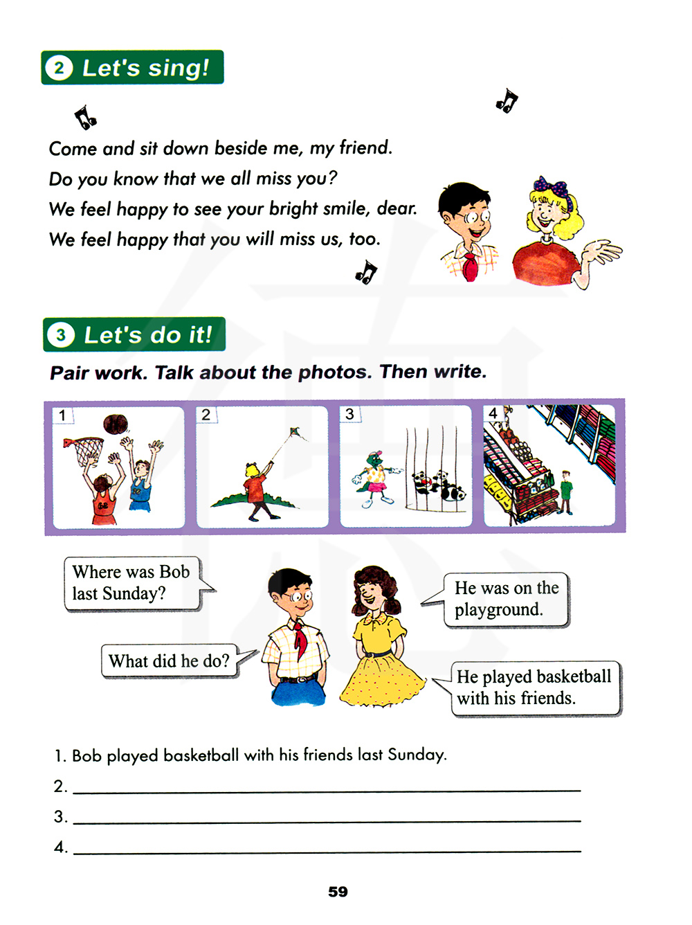 结对练习。谈一谈这些照片,然后写一写。