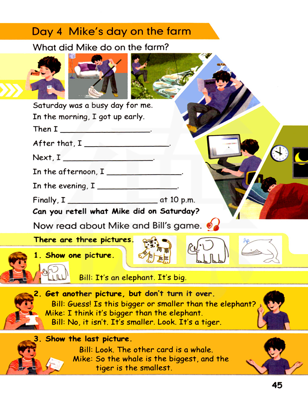 看。另外一张卡片是一头鲸鱼。所以鲸鱼是最大的,老虎是最小的。