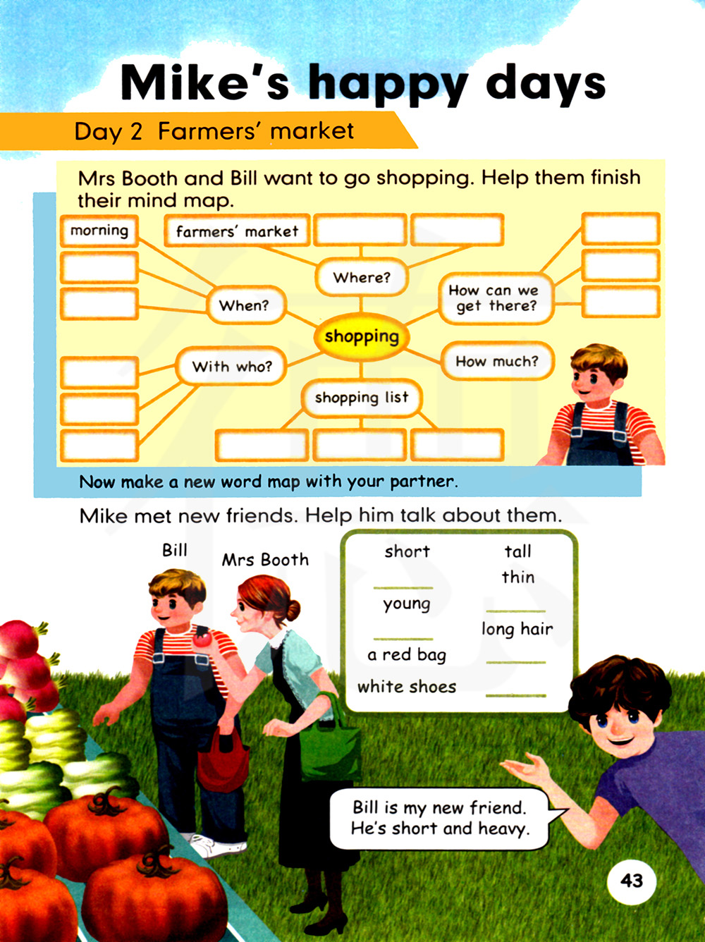 布斯太太和比尔想去购物。帮他们完成思维导图。