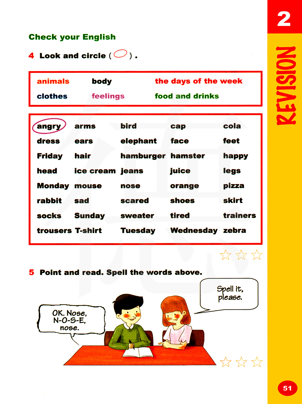 指一指并读一读。拼写上面的单词。