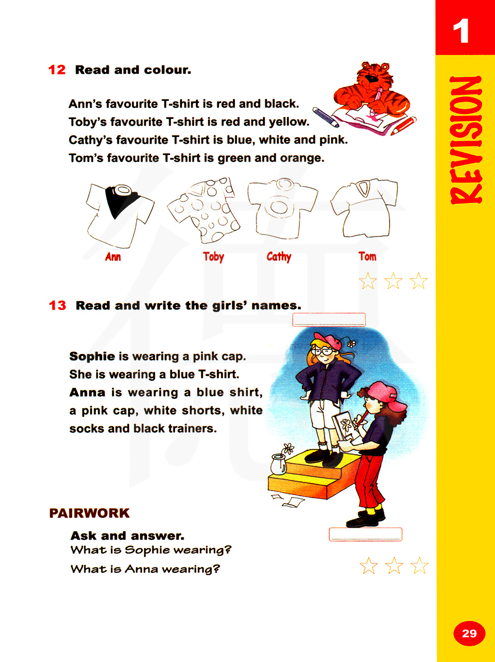 托比最喜欢的T恤是红色和黄色的。