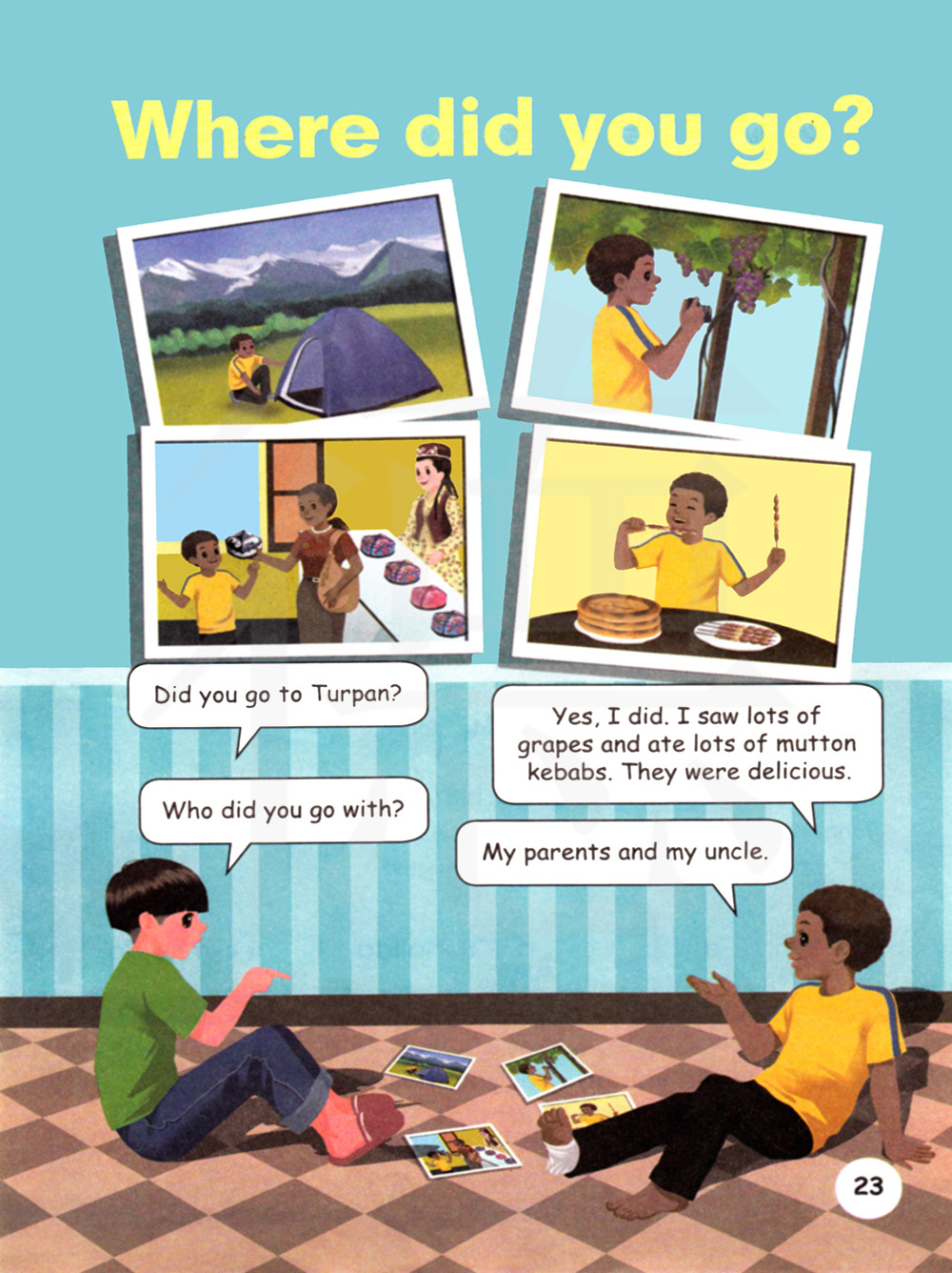 是的,去了。我看到了很多葡萄,并且吃了很多烤羊肉串。它们很美味。