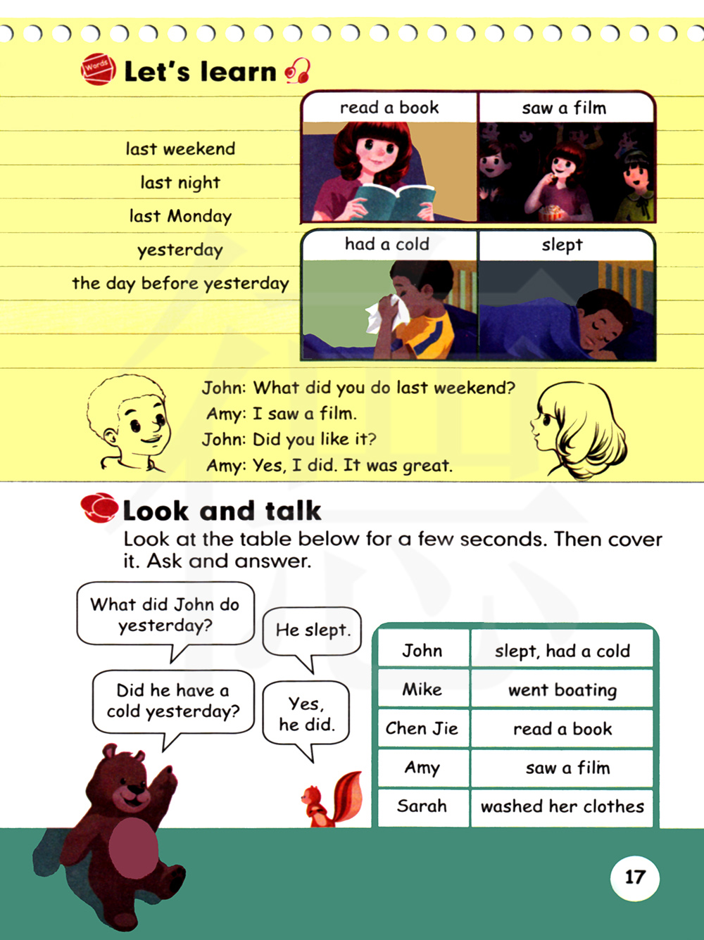 看几秒下面的表格。然后把表格遮起来。提问并回答。