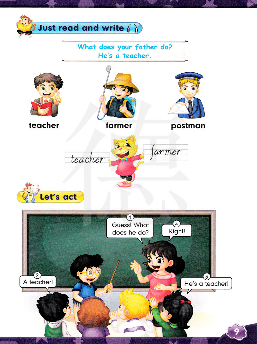 你爸爸是做什么的?他是一名教师.