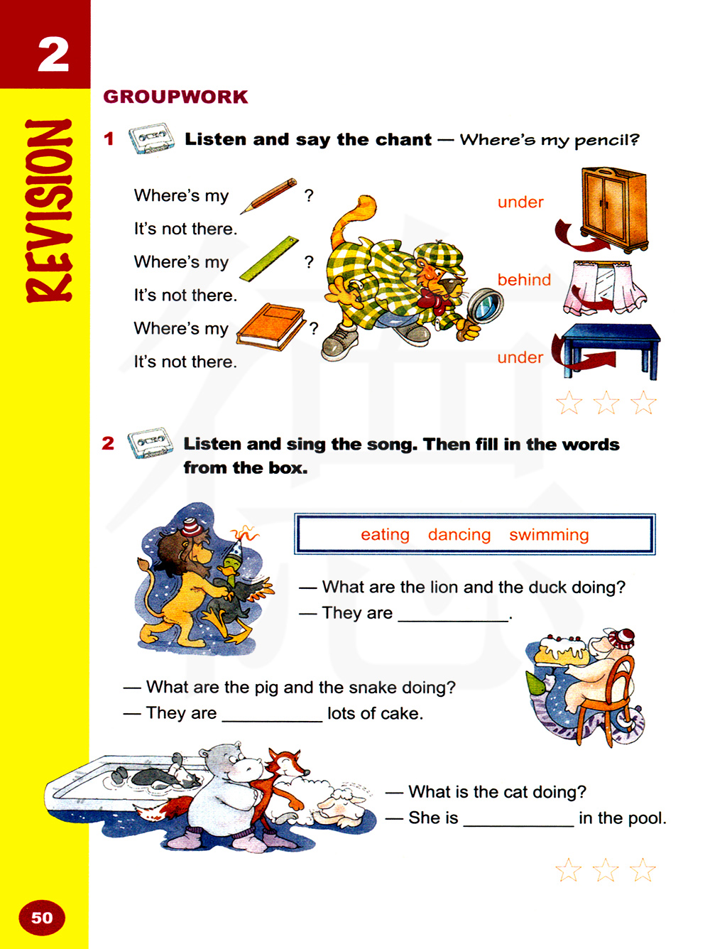 听一听,唱一唱这首歌曲。然后填写方框中的单词。