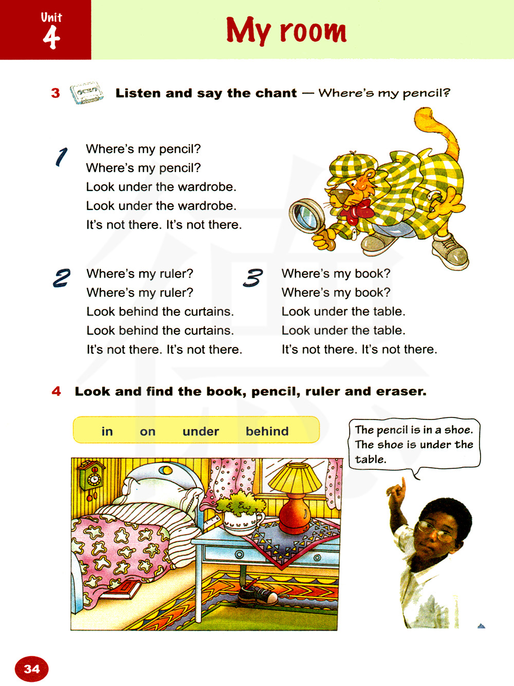 看一看,找一找书本,铅笔,尺子和橡皮擦。