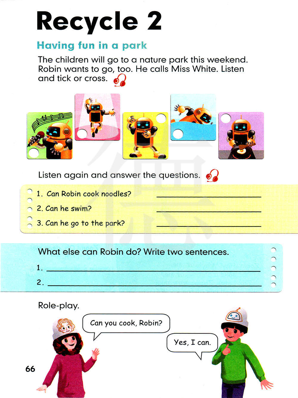 罗宾还会做什么?写出两个句子。