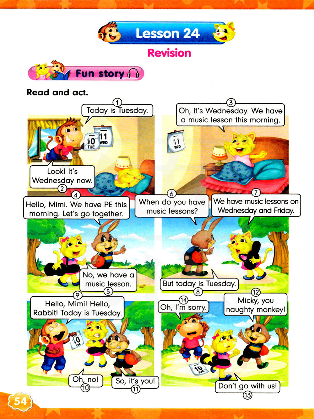 你好,咪咪。你好,兔子!今天是星期二。