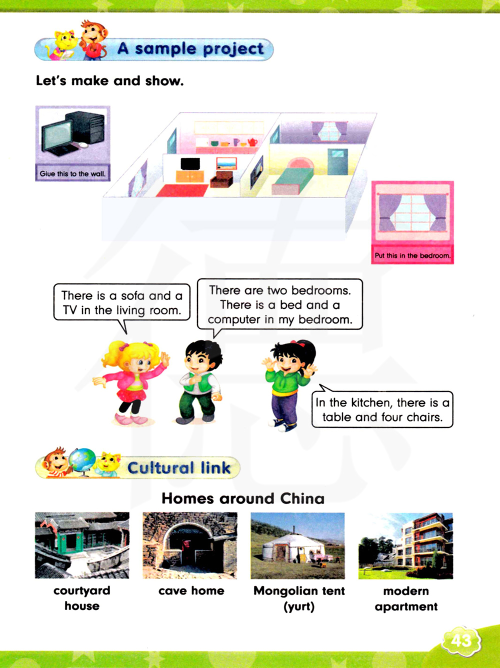 有两个卧室。我的卧室里有一张床和一台电脑。