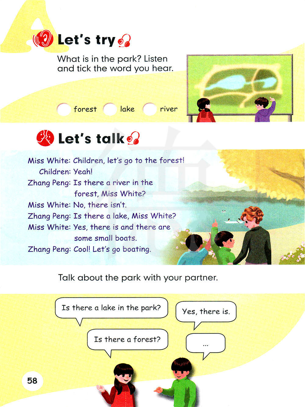 公园里有什么?听一听并勾出你听到的单词。