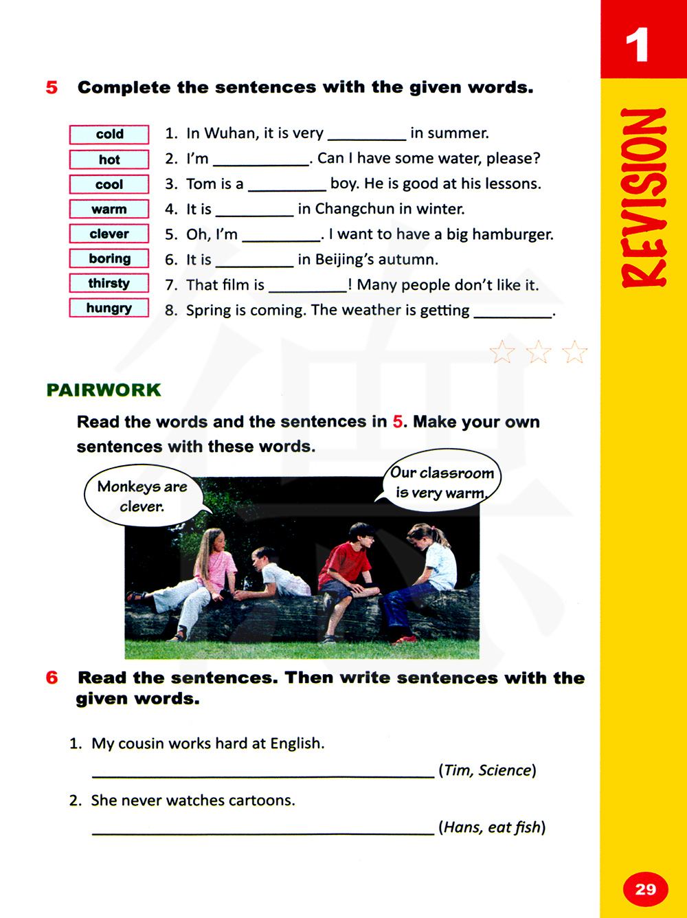 读句子。然后用所给的单词写句子。
